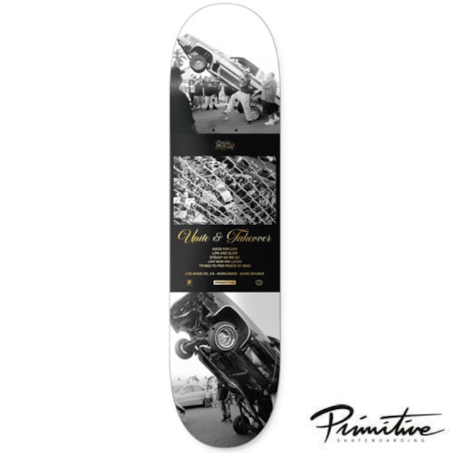 【メーカー在庫商品】 メーカー在庫の為、タイミングにより完売になっている場合がございます。 商品ご到着までに4日〜7日ほどかかりますので、予めご了承ください。 スケートブランド、PrimitiveとLA出身フォトグラファー、エステバン・オリオールのコラボデッキです。 正規ライセンス品 スケートボードとして、お部屋のインテリアにしてもカッコよくおススメです! 【ボードサイズ】8.25×32インチ(約21×81.3cm) 【推奨トラック】8.25インチ/ACE TRUCK:44 VENTURE:5.6 ROYAL:139 2008年、ロサンゼルスに常に新しい情報を発信するスケートセレクトブティックとして誕生した「PRIMITIVE」。 「スケーターは勿論、スニーカーコレクターやファッションにうるさい奴らの為に最高の物を提供する事」をコンセプトにスケートやミュージック、アートそしてファッションといった自身達が体現してきたライフスタイル“カルチャー”から生まれる“アイデンティティー”をプロダクトに落とし込むライフスタイルブランド。 【コンプリートセットをご希望の方】 ・お好みのトラック+足回りセットを同時にご注文いただき、コンプリートの仕様をお選びください。 ・トラックの同時注文がない場合はデッキのみとなります。