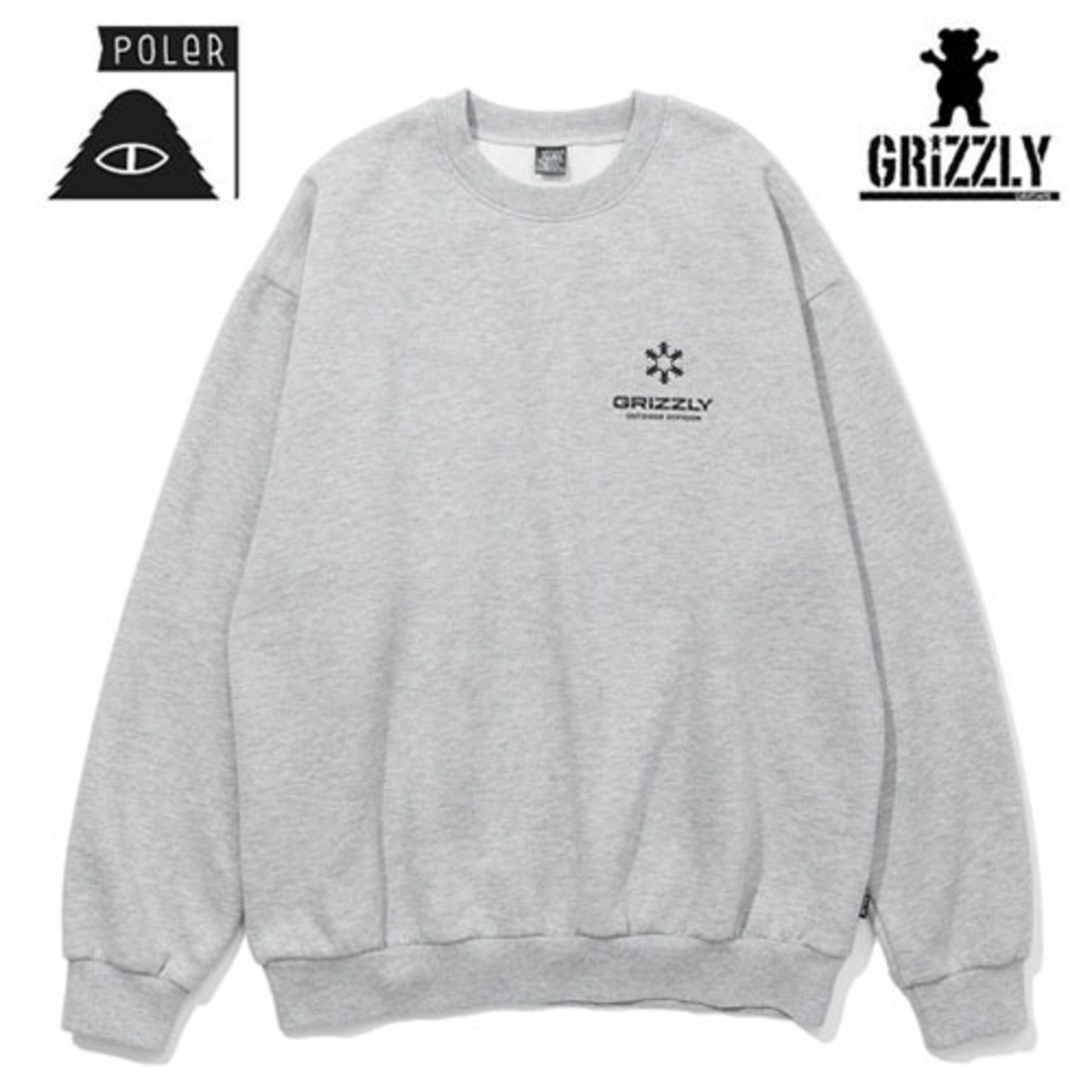 GRIZZLY × POLeR OUTDOOR CREW クルースウェット ヘザーグレー ファッション グリズリー ポーラー トレーナー