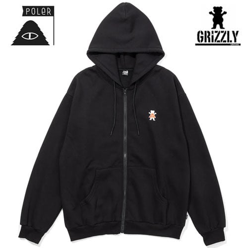 GRIZZLY × POLeR BEAR ZIP HOODIE ジップアップ パーカー ブラック ファッション グリズリー ポーラー フーディー