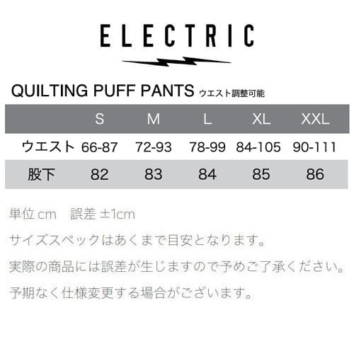 ELECTRICのキルティングパフパンツです。