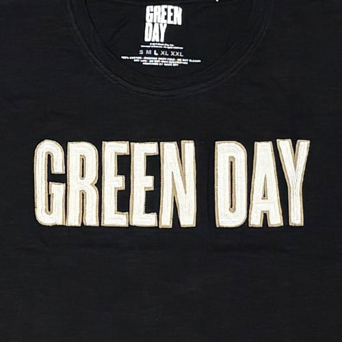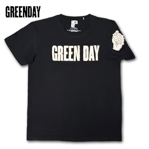 GREEN DAY Logo & Grenade Applique Tシャツ ブラック グリーン・デイ ロック メロコア パンク 刺繍 グッズ