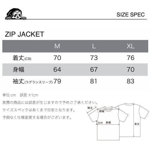 世界で活躍するアーティスト SKETCHY TANKによるアパレルブランド、ラーキングクラスのジップジャケットです。